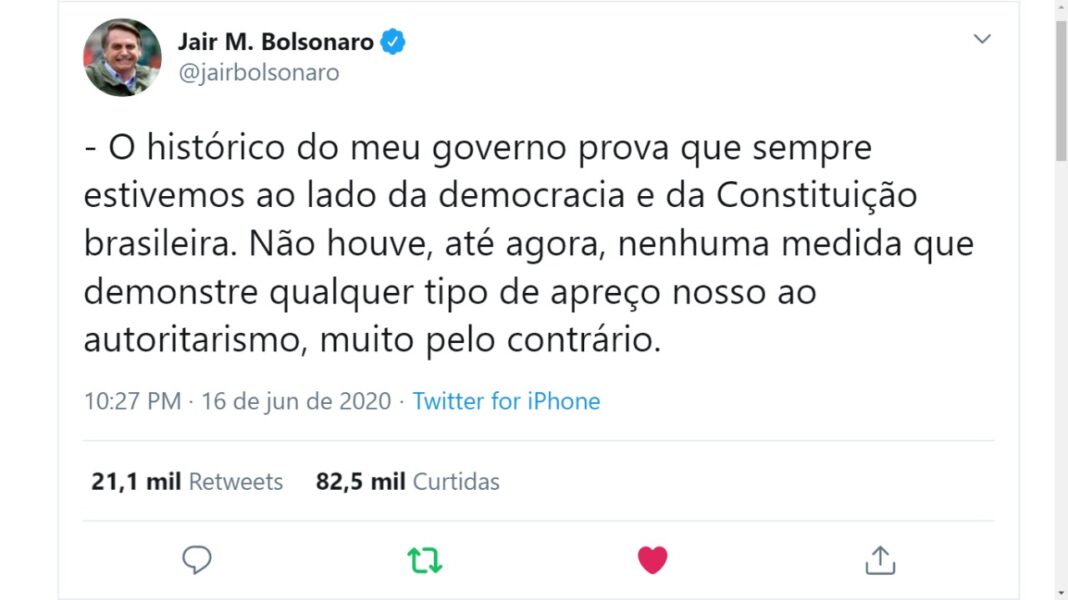 Essas ações e determinações do STF e de parte do Legislativo, contudo, foram adequada e vigorosamente respondidas por uma thread do Presidente da República, na madrugada de hoje, cujo primeiro tuíte é a imagem de capa deste artigo (cliquem no hiperlink em “thread” para ler).