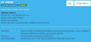 Sobre o HC do advogado do interior aqui de São Paulo, a decisão de Carmen Lúcia foi exatamente a seguinte: