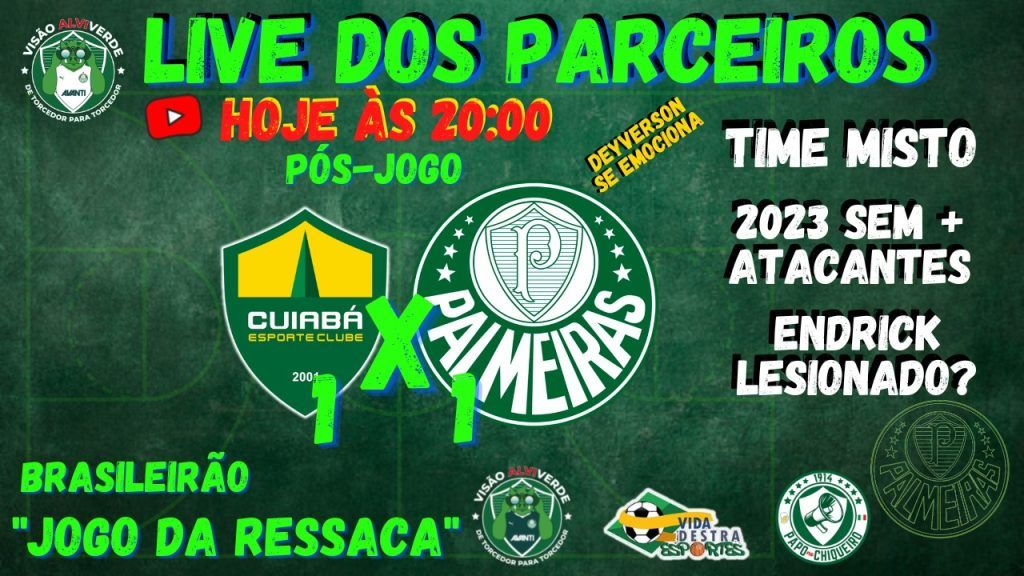 Vídeos e Lives – Live dos Parceiros 38: Pós-Jogo Cuiabá 1×1 Palmeiras | Jogo da Ressaca | Endrick lesionado? |...