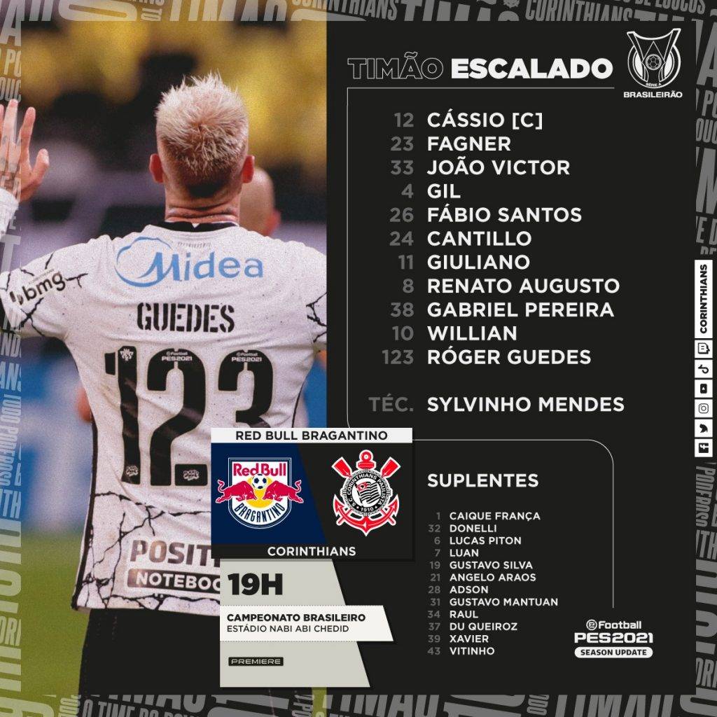 O Timão foi a Bragança Paulista enfrentar o RB Bragantino, pela 23ª rodada do Campeonato Brasileiro. O técnico Sylvinho manteve a escalação da rodada passada, com Cantillo jogando como primeiro volante.
