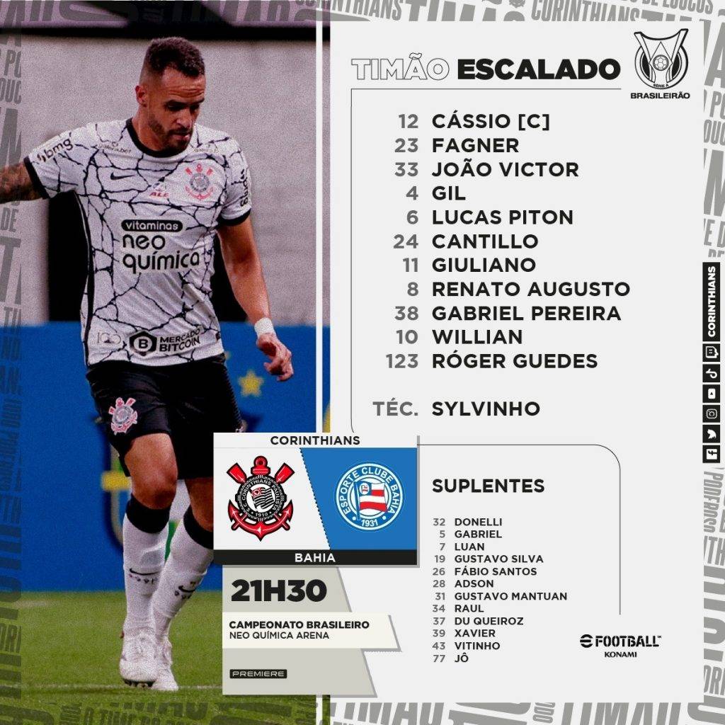 Aos 21, Gabriel Pereira fez um passe rasteiro para dentro da área e encontrou Renato Augusto de frente pro gol, mas a bola quicou no momento do chute e atrapalhou a finalização do camisa 8! Dez minutos depois, Gilberto caiu na área depois de cruzamento de Nino Paraíba. O VAR chamou o árbitro para analisar um puxão de Lucas Piton. Lance infantil do lateral corinthiano e pênalti marcado para o Bahia. Gilberto na bola e 1×0 para os visitantes.