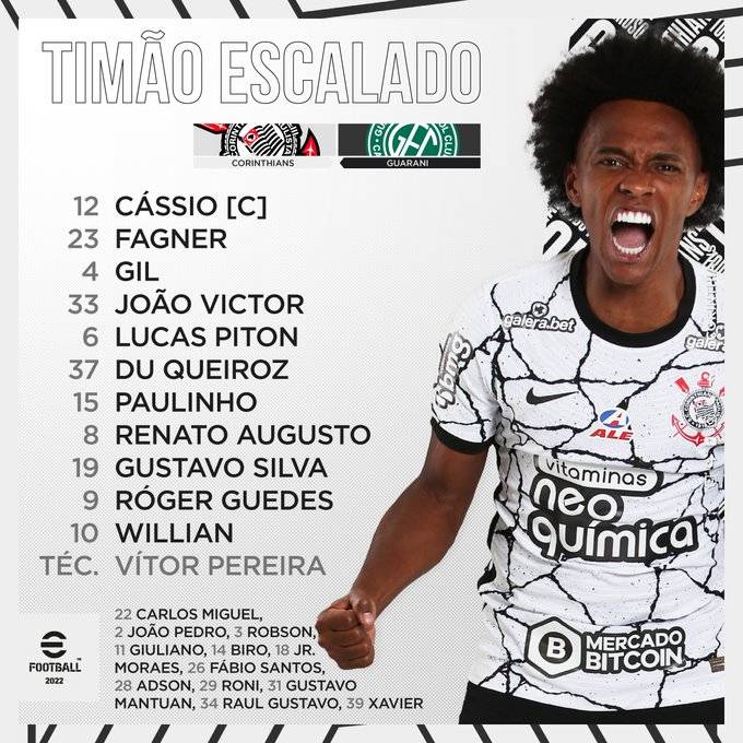 Com isso, Vítor Pereira mandou a campo: Cássio, Fágner, João Victor, Gil e Piton. Du Queiroz, Paulinho e Renato Augusto. Com Willian, Mosquito e Roger Guedes na frente.