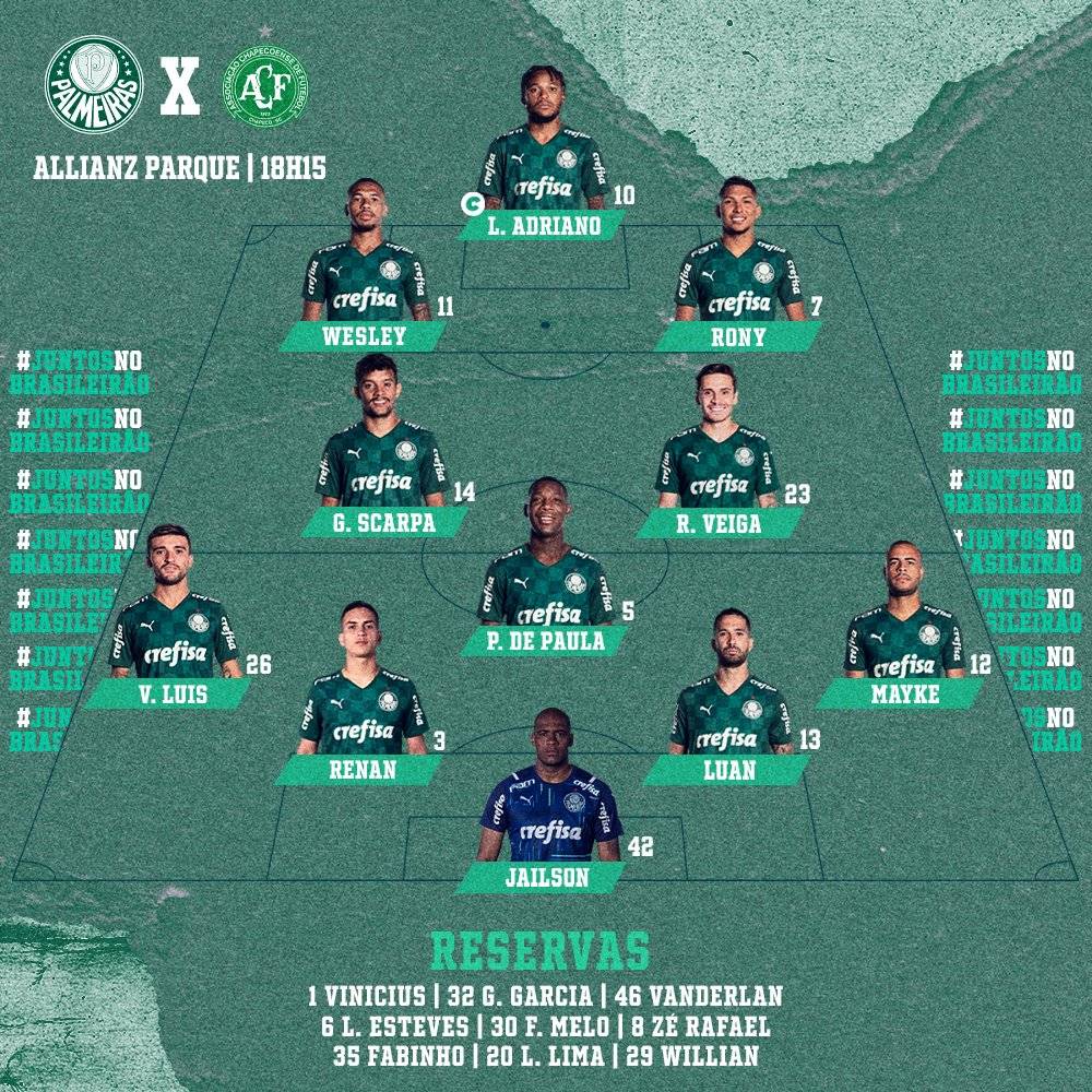 Aos 42 minutos, Luan cruzou para Rony, que cabeceou pra fora! Aos 48 minutos, no finalzinho da partida, Raphael Veiga cruzou e Felipe Melo cabeceou pra fora! Fim de jogo no Allianz Parque: Porco 3 x Chape 1. Marcamos nossos primeiros três pontos no Campeonato Brasileiro!