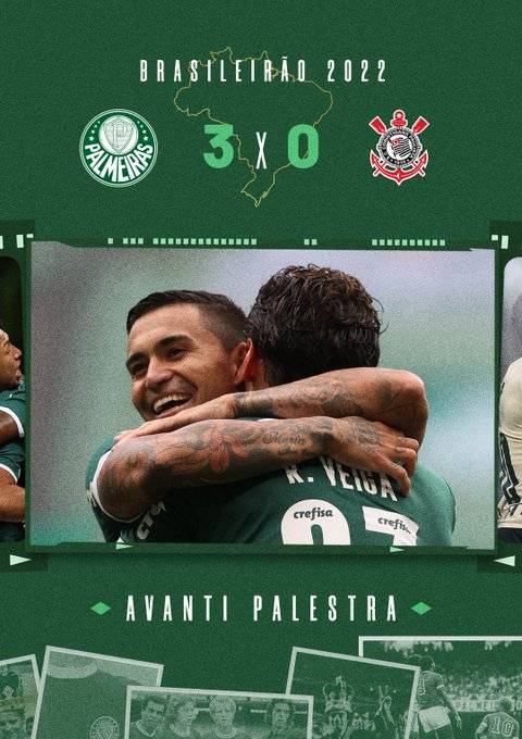 O Verdão até poderia ter ampliando o placar, pois não parou de pressionar os Gambás. Mandamos no jogo e foi um verdadeiro amasso! Placar final na Arena Barueri: Palmeiras 3×0 Corinthians.