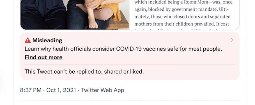 Título Original: Ghoulish Fact-Checkers at Twitter Slap ‘Misleading’ Label on Obituary of Mom Who Died from Vaccine-Induced Blood Clot